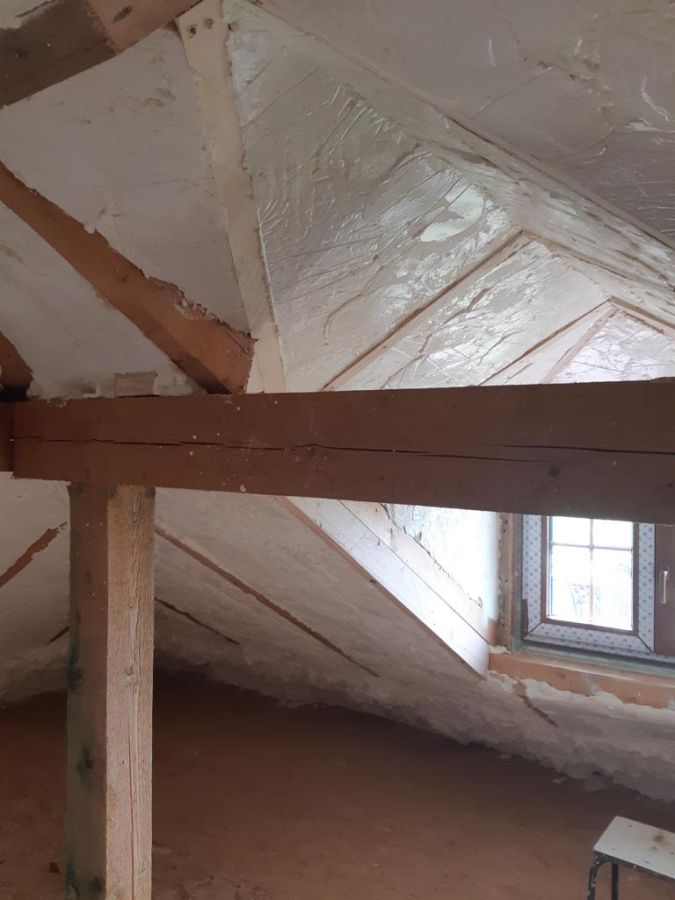 V minulých dnech jsme zateplovali podkroví v obci Holostřevy nedaleko Boru. Aplikace izolace ICYNENE H2Foam Lite probíhala mezi krokve s následným zaklopením eko-deskami. Majitel zde řešil převážně užitný prostor a díky naší izolaci ušetřil cenné centimetry.
