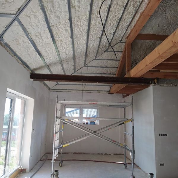 Zateplení půdního prostoru a střešní konstrukce v obci Křižanov na Vysočině izolací ICYNENE H2Foam Lite. Díky kanadskému zateplení ICYNENE ušetříte na nákladech na vytápění či chlazení až 70 %. Zavolejte nám a my vám to dokážeme.