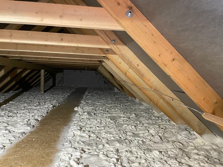 Zateplení stropu půdy v Dolních Dubňanech s využitím materiálu Icynen H2Foam Lite. Naše pěnová izolace se dostane do každé skulinky střešní konstrukce a dokonale tam vyplní prostor, aniž by dala šanci tepelným mostům.