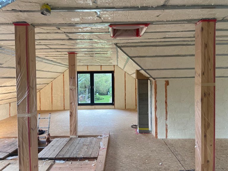 Zateplení podkrovního prostoru malebné poloroubenky od OK PYRUS do předem připravené konstrukce stříkanou tepelnou izolaci ICYNENE H2FoamLite. Izolace ICYNENE má mnoho způsobů využití, zde jsme vám je sepsali >>>