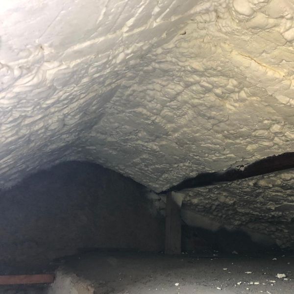 Zde byla izolace Icynene H2FoamLite aplikována v půdním prostoru, kde střešní konstrukce byla bez izolace.